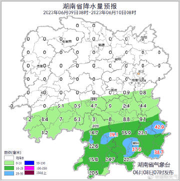 湖南省气象台(8日10时发布)预计,8日至10日,受副高边缘暖湿气流、中低层弱切变共同影响,湘中、湘南部分地区有中等阵雨或雷阵雨,局地大雨;另外,9日、10日和11日湘中、湘北部分地区早晨有雾。