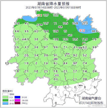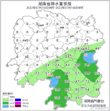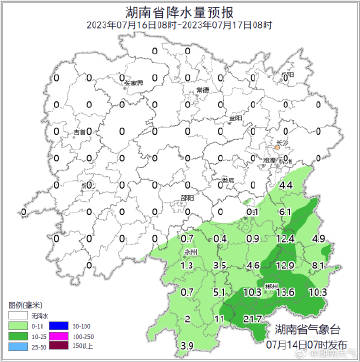 【今明天湖南局地有大到暴雨(14日湘北局地、15日湘南局地),自7月1日以来的湖南高温天气将有所缓解】湖南省气象台预计,14日至15日受中低层切变及地面弱冷空气共同影响,14日湘北、15日湘南局地有大到暴雨,并伴有短时强降水、雷暴大风等强对流天气;16日受偏东风扰动影响,湘南有阵雨或雷阵雨。另外,自7月1日开始的高温天气将有所缓解。
