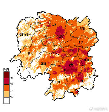 另外,7月1日以来我省出现一轮区域性高温过程,7月13日35℃以上的高温覆盖面积达到最大,为16.54万平方公里,最高气温出现在资兴39.5℃(7月13日,图2)。