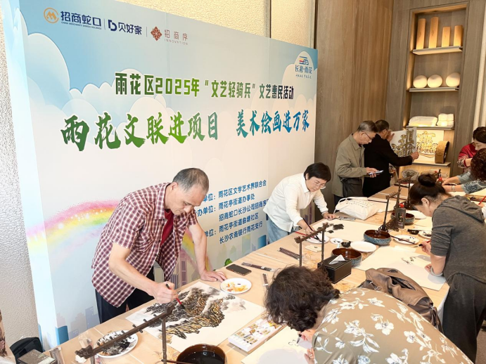 除了进重点片区项目现场创作,雨花区文联还为雨花亭街道各社区的居民朋友开设“生活中的美学”主题讲座。区美协联动长沙农商银行雨花支行、山枫艺谷徐悲鸿艺术馆,安排画家们用通俗易懂的语言,结合经典作品和日常生活,不仅讲解绘画的基本理论、写意花鸟画的构图、国画颜料的使用等知识,还现场示范如何以劳动者风采、城市发展等为主题,通过虚实结合、层次渲染展现画面意境,用艺术语言展现时代精神,弘扬传承中华优秀传统文化,丰富社区居民精神文化生活。