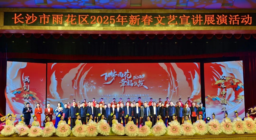 飞梦雨花,幸福出发。1月24日晚,在首个“非遗版”春节即将到来之际,长沙市雨花区举行“我们的节日·欢乐中国年”2025年新春文艺宣讲展演活动,通过“文艺+宣讲”等创新形式,深入学习贯彻党的二十大和二十届二中、三中全会精神,深入学习践行习近平文化思想,全景呈现雨花区区治大院搬迁20年来砥砺前行的奋进历程、辉煌成就与独特魅力。