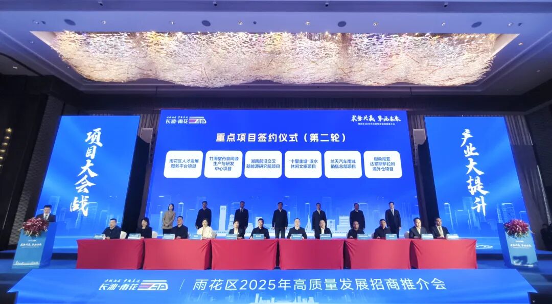 2月20日上午,“聚势共赢 擎画未来”长沙市雨花区2025年高质量发展招商推介会举行。在湖南省“三高四新”美好蓝图引领下,雨花区通过智能制造、土地资源、特色楼宇、文旅民宿四个板块,立体呈现区域资源禀赋与产业机遇,吸引逾400名意向客商、本土企业、招商大使、商协会、校友代表等齐聚一堂,系近年来雨花区规模最大的招商推介会。现场签约重点项目12个,开年以来累计引进投资超80亿元,项目涵盖智能制造、内外贸一体化、乡村振兴等,为区域经济高质量发展注入新动能。