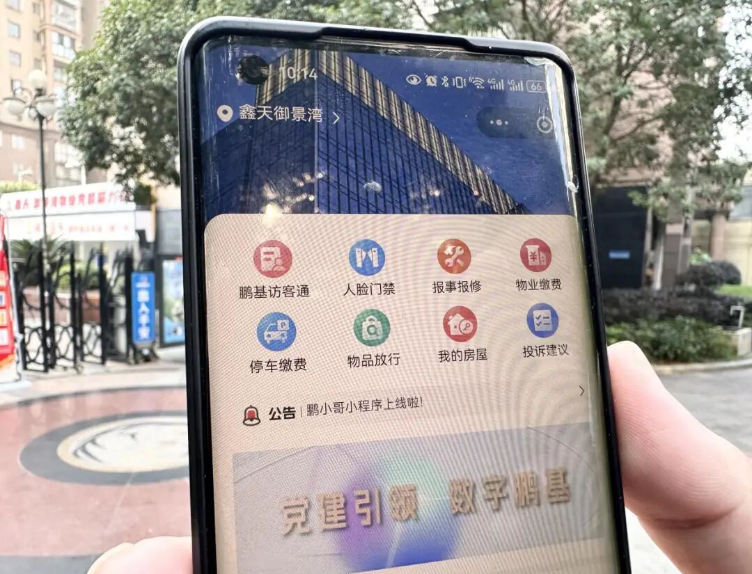 政企协同创新是推动智慧物业发展的关键。鹏基居业的数字指挥中心大屏幕集成了物联网预警平台、设施设备远程监控、人员调度等多种功能,实现了社区运行的“一屏统览”;在居民手机端,“鹏小哥”小程序成为连接千家万户的线上服务大厅,报事报修、物业缴费、服务评价、访客管理等功能一应俱全,实现安全隐患“秒回应”,邻里报修“一键达”。