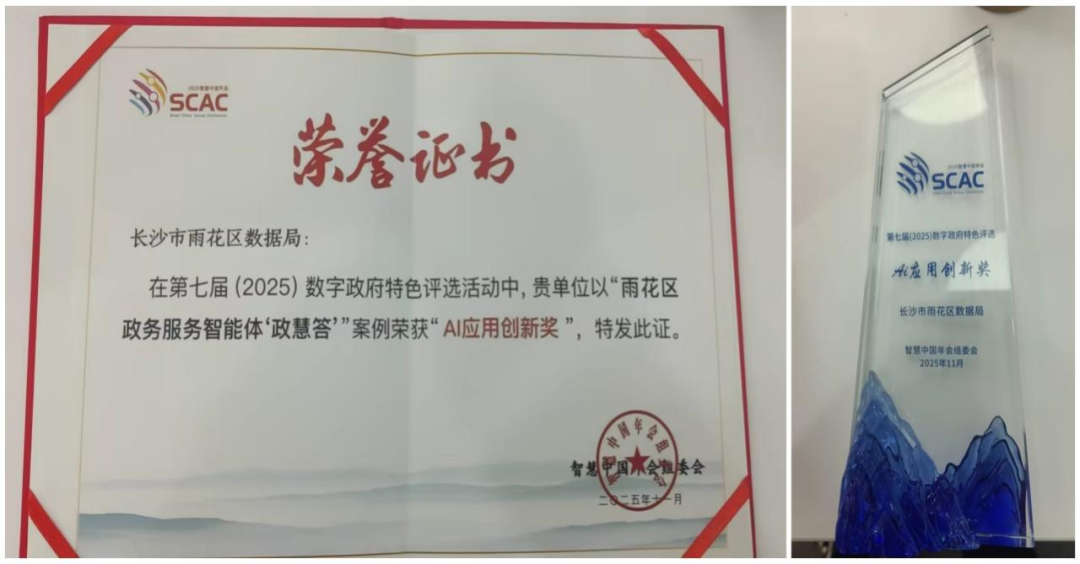 “政慧答”是由雨花区数据局研发的雨花区政务服务智能体,它凭着在AI技术与政务服务深度融合上的创新实践,从全国数百个案例中脱颖而出。
