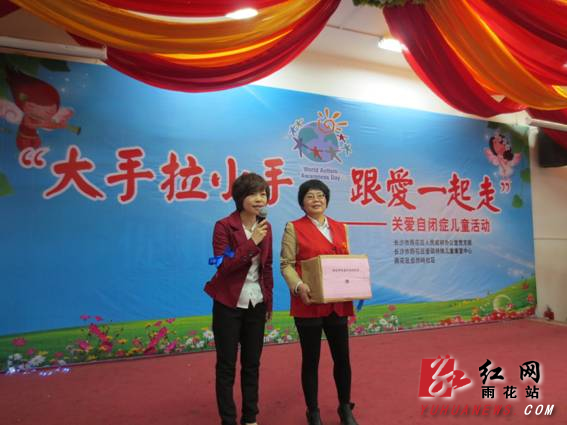 雨花区新闻网4月2日讯(通讯员 许嫚华)2013年4月2日,是第六个国际自闭症关注日,雨花亭街道自然岭社区携手雨花区政府办公室党支部、长沙爱萌特儿童康复中心共同举办“大手牵小手,跟爱一起走”蓝丝带关爱自闭症儿童活动。雨花区政府副区长李国军作了重要讲话,向社区居民发出了倡导并对自闭症儿童寄语了厚望。