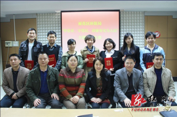 红网雨花站4月24日讯(通讯员 胡晓蓉) 为深入学习党的十八大精神,全面贯彻落实中央“八项规定”、省委“八项禁令”、市委“五项规定”及区委党务工作相关会议精神,在雨花区第8个“4·20廉政文化节”来临之际,区环保局于4月23日举办“学党章,守党纪,清廉务实为人民”主题演讲比赛。区纪委副书记、区监察局局长陈润兰、区直机关工委书记石曙红和区环保局领导担任比赛评委并为获奖选手颁奖。