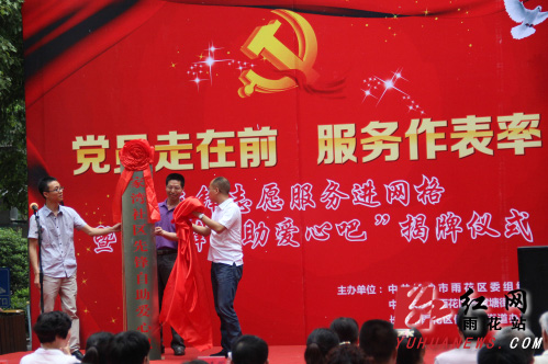 雨花区新闻网7月1日讯(通讯员 雨惠)6月30日上午,由雨花区委组织部,侯家塘街道工委、办事处共同主办的“党员走在前,服务作表率”先锋志愿服务进网格暨“先锋自助爱心吧”揭牌仪式在廖家湾社区志愿者广场隆重举行。市政府副秘书长、市信访局党组书记、局长周春晖,市信访局党组成员、纪检组长葛燕华,市委组织部组织指导处副处长喻天慧,区人大常委会联络工委主任周伟,雨花区委组织部副部长、区委基层办主任王青春等领导莅临现场,街道党政班子成员,各网格先锋服务团队,辖区党员群众代表和明星小义工代表参加仪式。