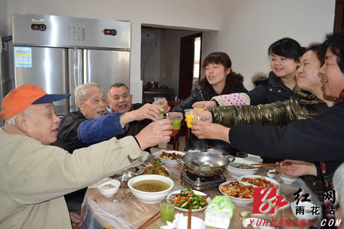 红网雨花站1月27日讯(通讯员 雨惠)为积极主动参与“六个走在前列”大竞赛活动,全面融入雨花区“加快实现‘三市三梦’目标,全面建成‘五新雨花’工作,全面融入圭塘街道打造“首位圭塘、幸福圭塘”工作,进一步加强服务型党组织建设,不断推进社会管理创新,切实转变工作作风,有效提升基层工作水平,大幅增强社区居民群众的信赖度、满意率、幸福感。为老服务要看长远,老人安心安定了,子女才能无忧,社区才有新发展。考虑到社区老年人相对较多,以及小孩和未成年人“特殊情况”下的送餐帮扶需求,在市国资委(社区对口联点单位)、雨花区、圭塘街道的关心和支持下,圭塘街道大塘社区本着为民做好事、办实事,解决群众普遍关心的生活问题的原则,积极整合多方资源,将社区服务中心前的长冶小区废弃变电站改造成了一个为社区各类特殊人群提供送餐服务的“为民食堂”。该食堂2013年10月29日开业以来,积极为社区老年人提供优价安全美味用餐和免费送餐服务。在春节来临之际,社区特地邀请高龄老人和空巢老人到“为民食堂”吃团年饭。